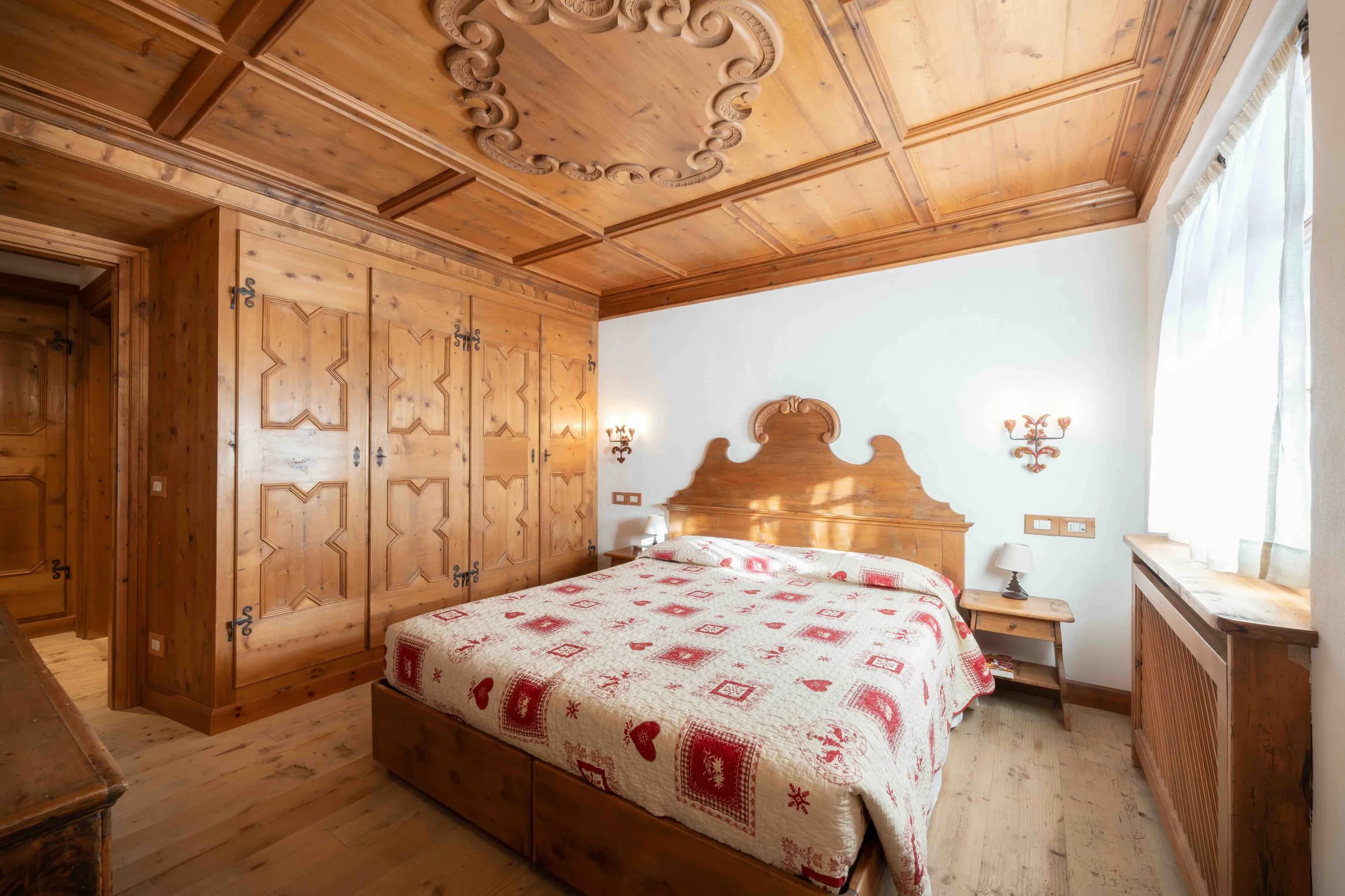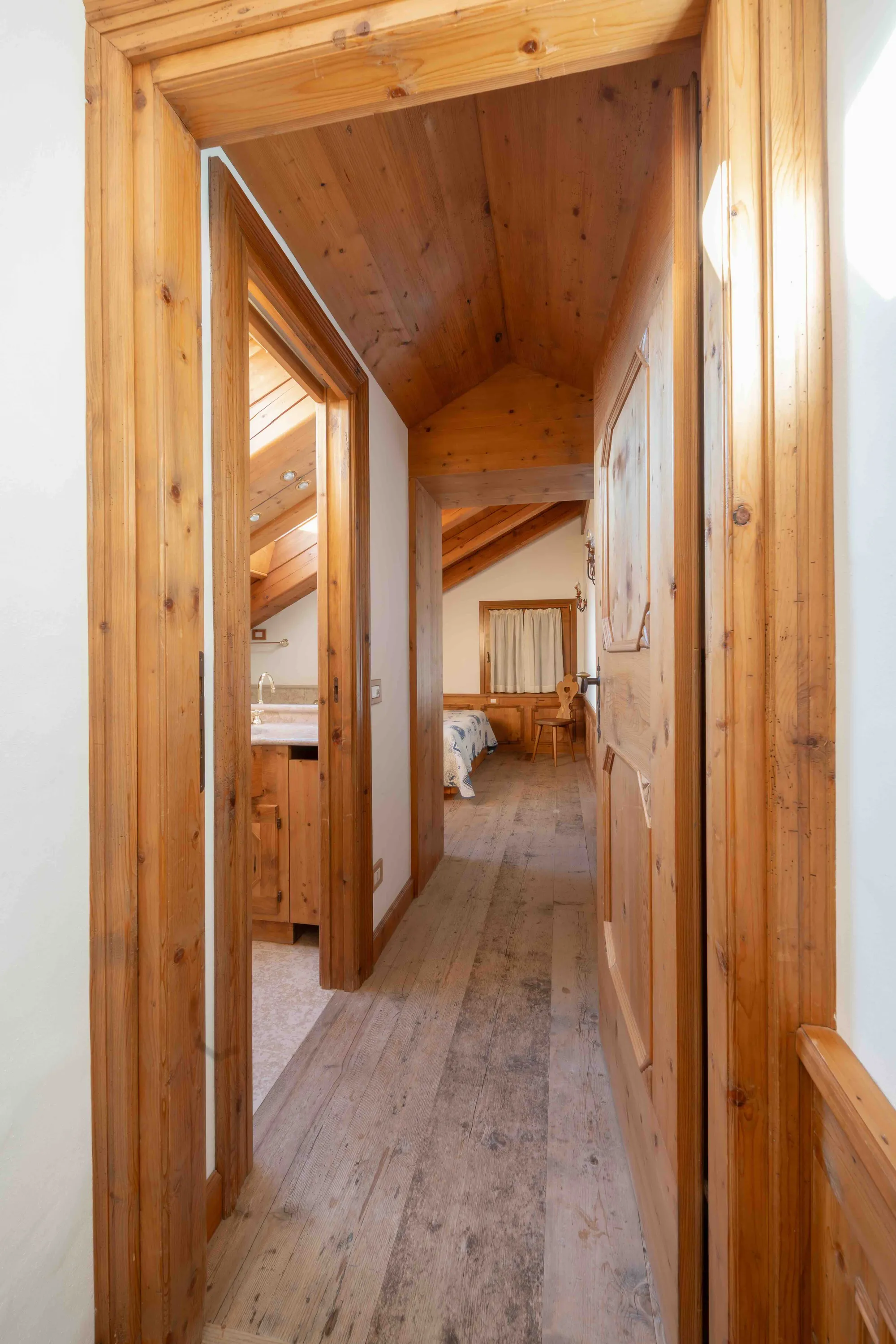 In una tipica casa ampezzana ristrutturata, l’appartamento si trova al primo piano ed è disposto su due livelli, combinando il fascino dell’architettura tradizionale con comfort moderni.
