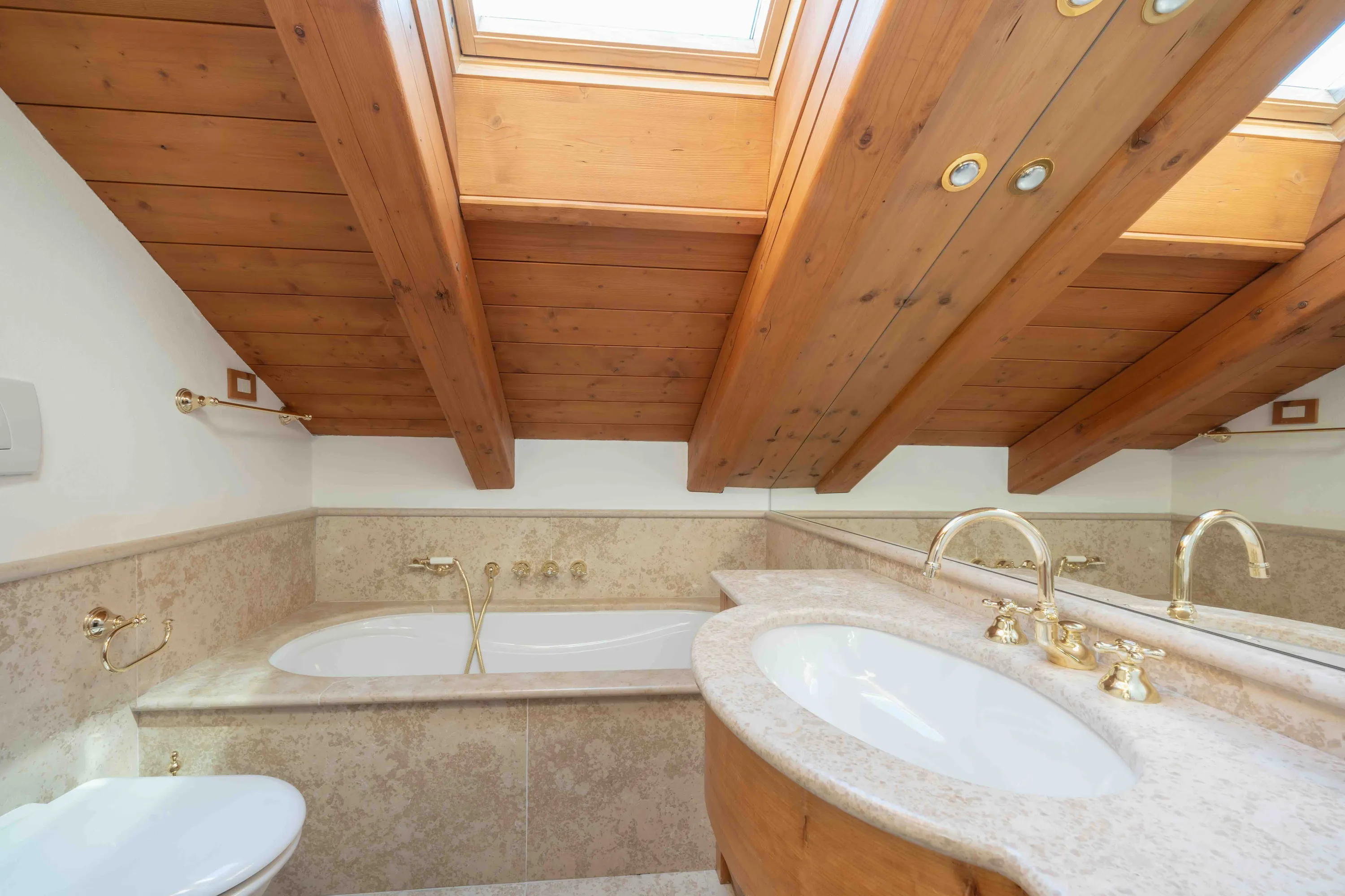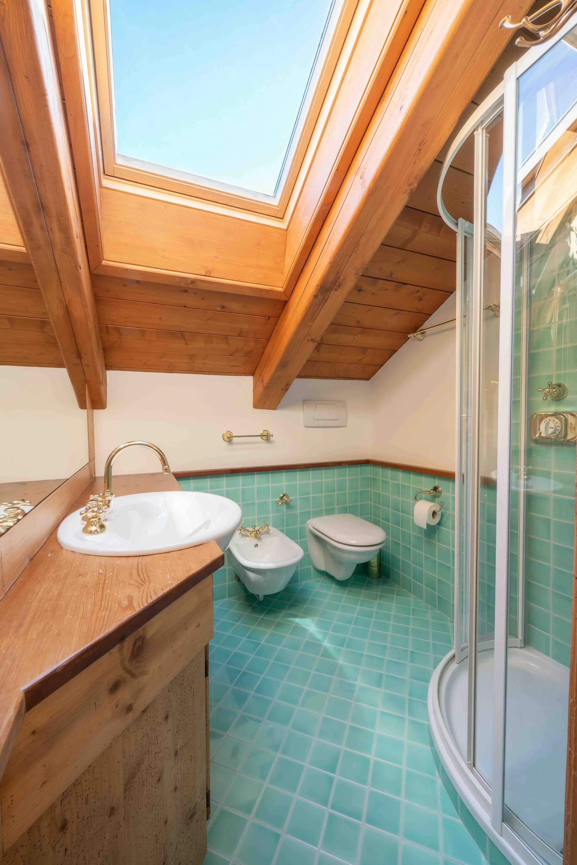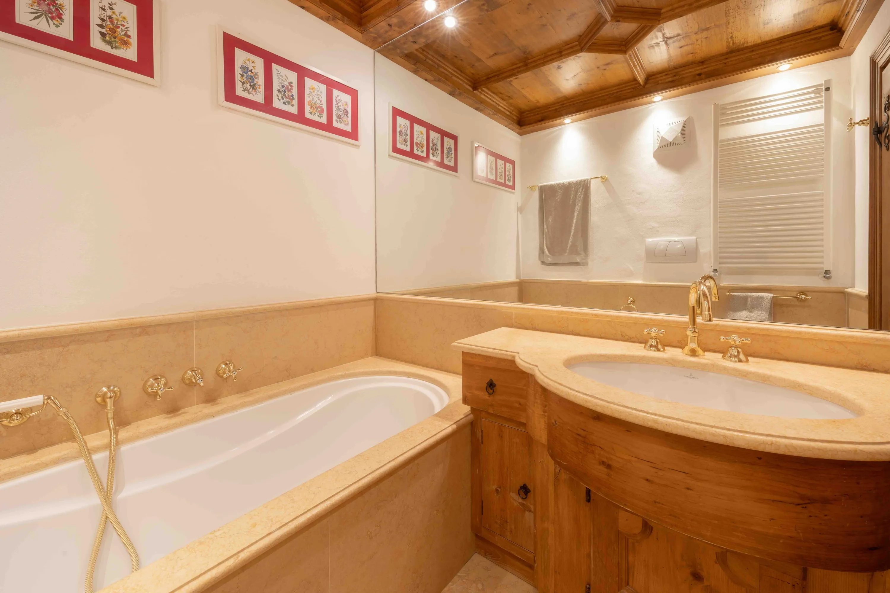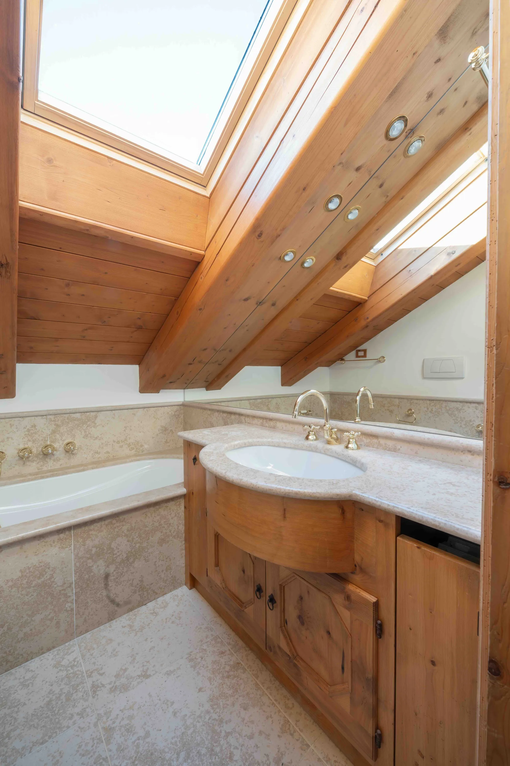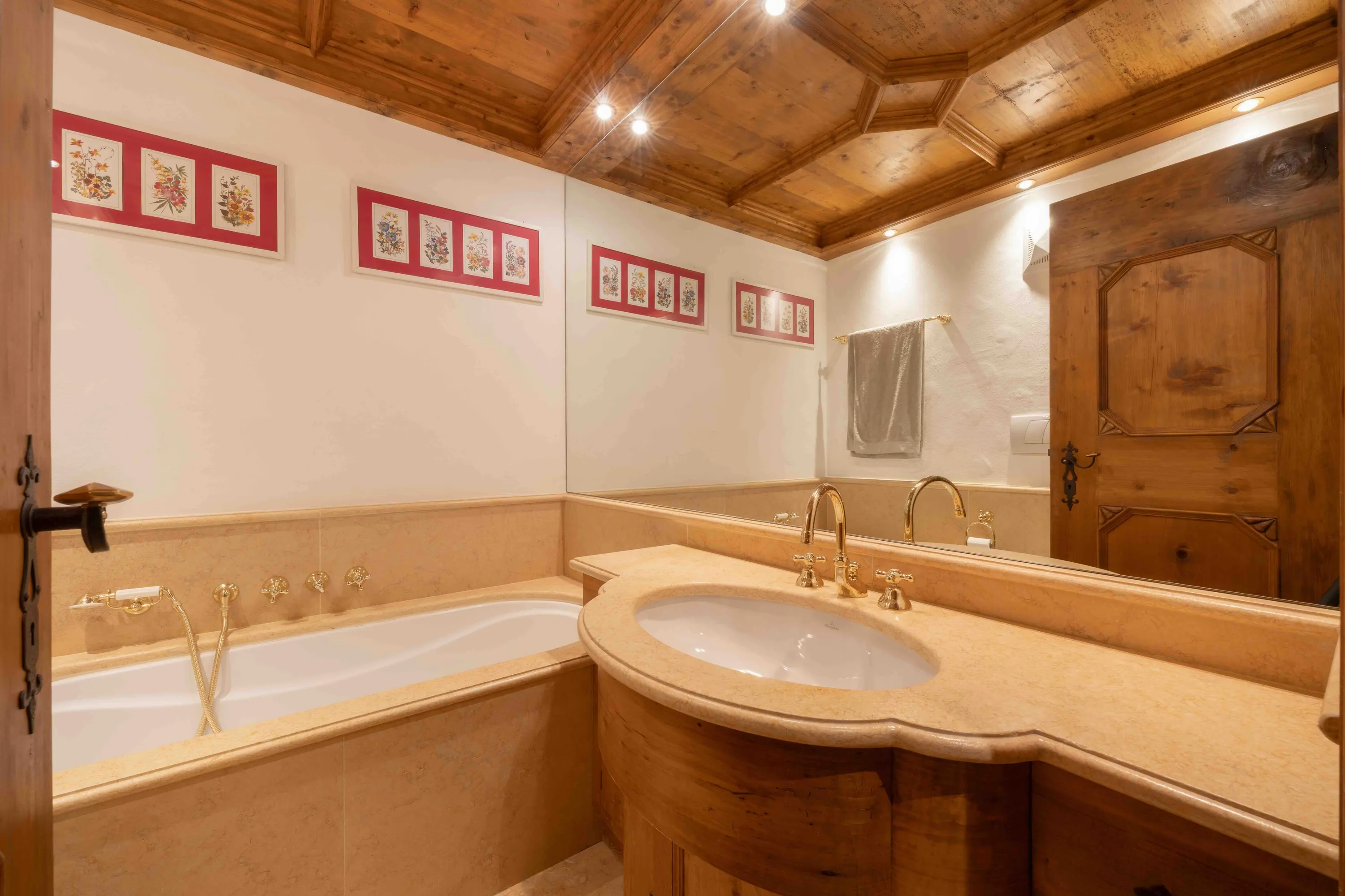 In una tipica casa ampezzana ristrutturata, l’appartamento si trova al primo piano ed è disposto su due livelli, combinando il fascino dell’architettura tradizionale con comfort moderni.