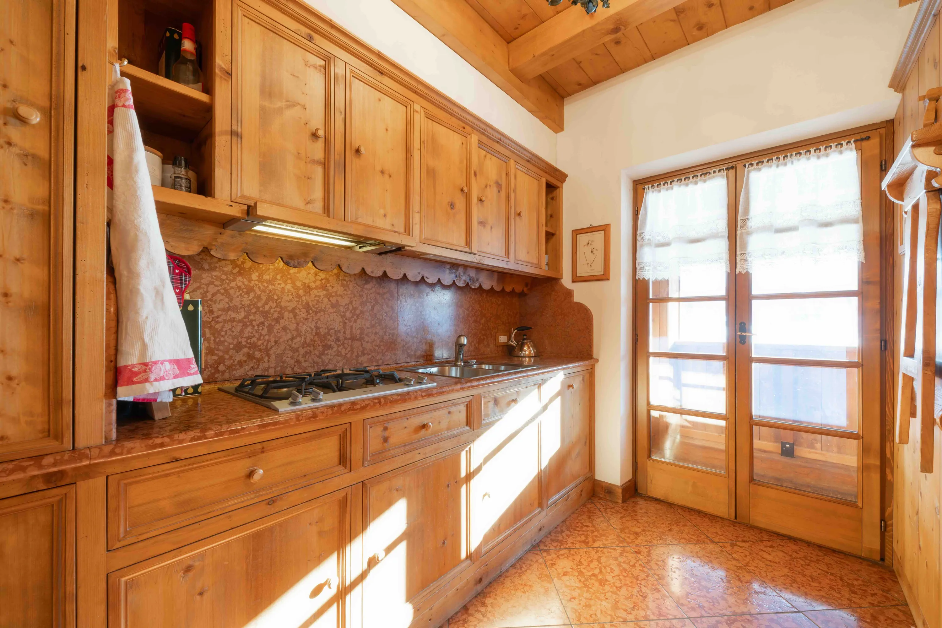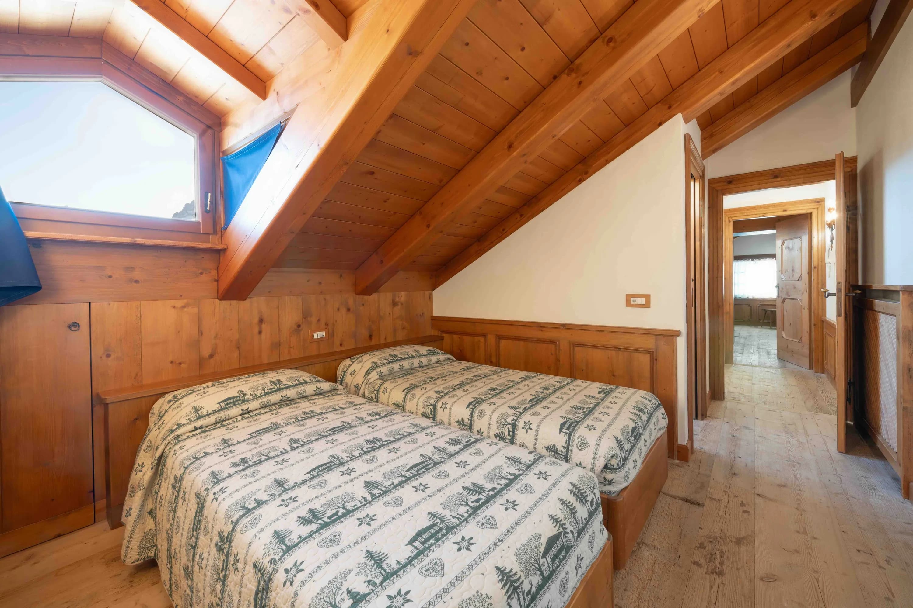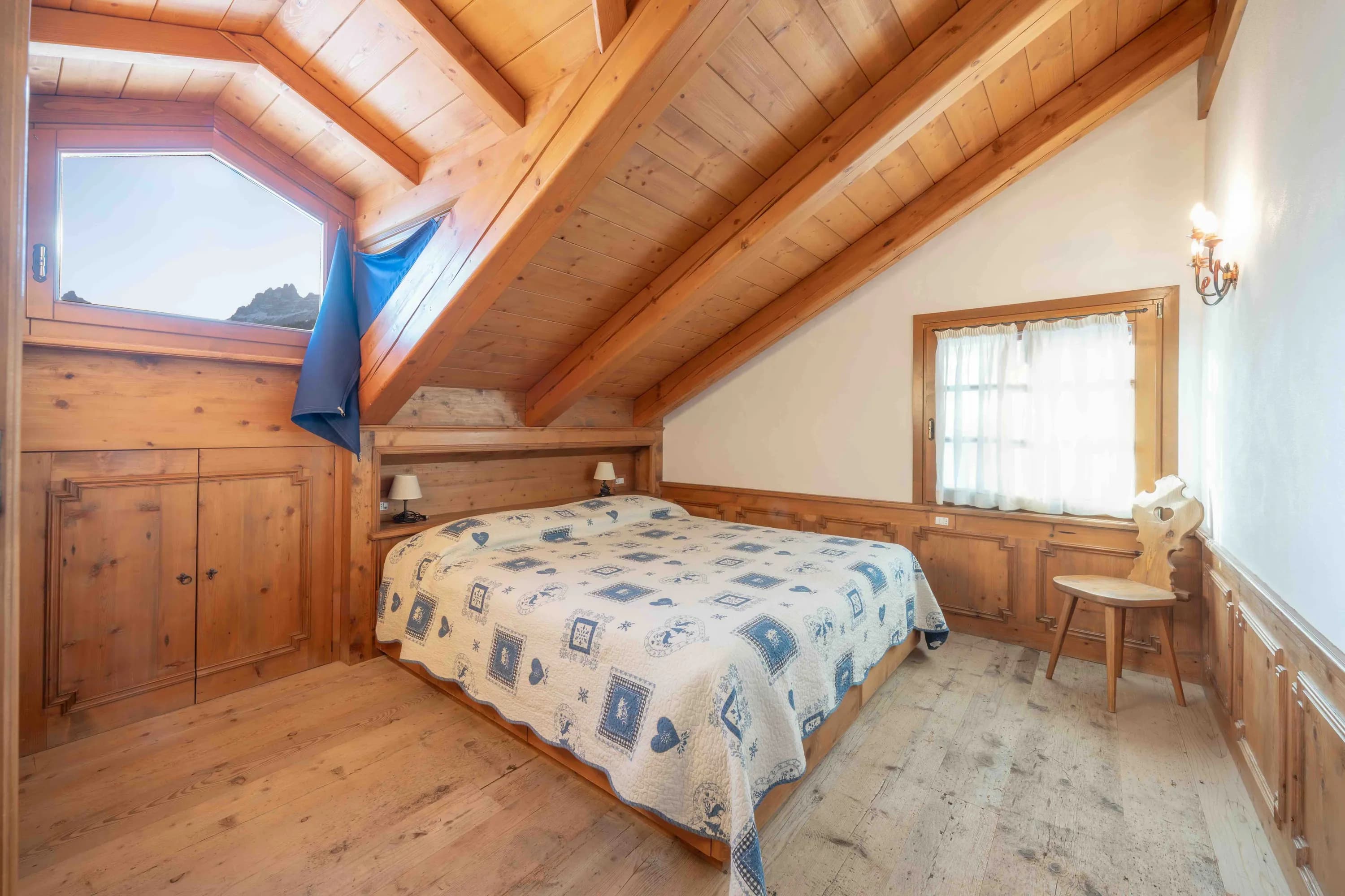L’ingresso conduce a un accogliente soggiorno, impreziosito da finiture in legno e ampie finestre che catturano la luce naturale. La cucina, separata dal soggiorno, offre un ambiente funzionale e ben organizzato. La camera padronale, spaziosa e raffinata, dispone di un bagno privato e accesso diretto a un terrazzo esclusivo, perfetto per momenti di relax all’aperto, circondati dalla tranquillità delle Dolomiti.